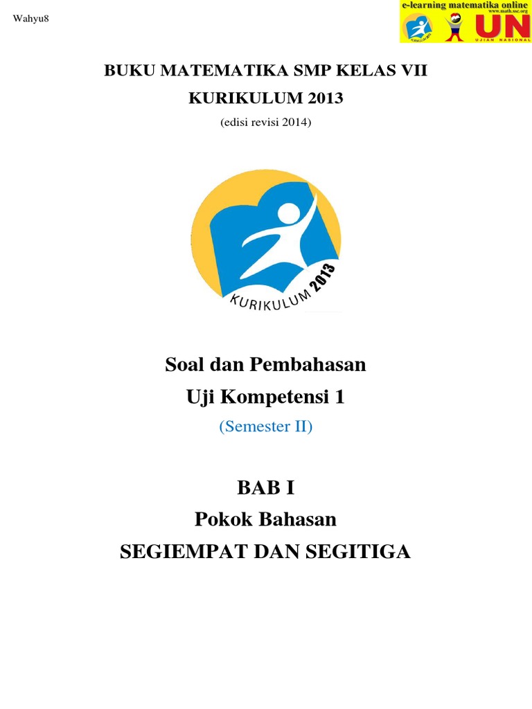 Pilihlah salah satu jawaban yang tepat! Ruang kelas kami luas dan menyenangkan. Kompetensi inti pembelajaran matematika kelas vii 1 menghargai dan menghayati ajaran agama yang dianutnya menghargai dan menghayati perilaku jujur, disiplin, tanggungjawab, peduli (toleransi, gotong royong), santun, 2 percaya diri, dalam berinteraksi secara efektif dengan lingkungan sosial dan alam dalam. Pilihan ganda soal dan pembahasan ayo kita berlatih 17 matematika membandingkan bilangan bulat kelas 7 kurikulum 2013. Dalam melakukan download kunci jawaban matematika kelas 9 halaman 81, 82 semester 1 ada beberapa hal yang harus kalian perhatikan.